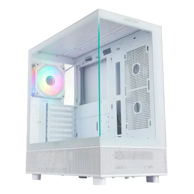 Con su diseño elegante, el lateral izquierdo y el frontal de la caja están fabricados en cristal templado, y la estructura sin marcos permite una visión completa de los componentes internos del sistema. Este diseño transparente no solo añade un toque estético impresionante, sino que también te permite mostrar tus componentes y personalizar la iluminación para crear una experiencia visual impactante.