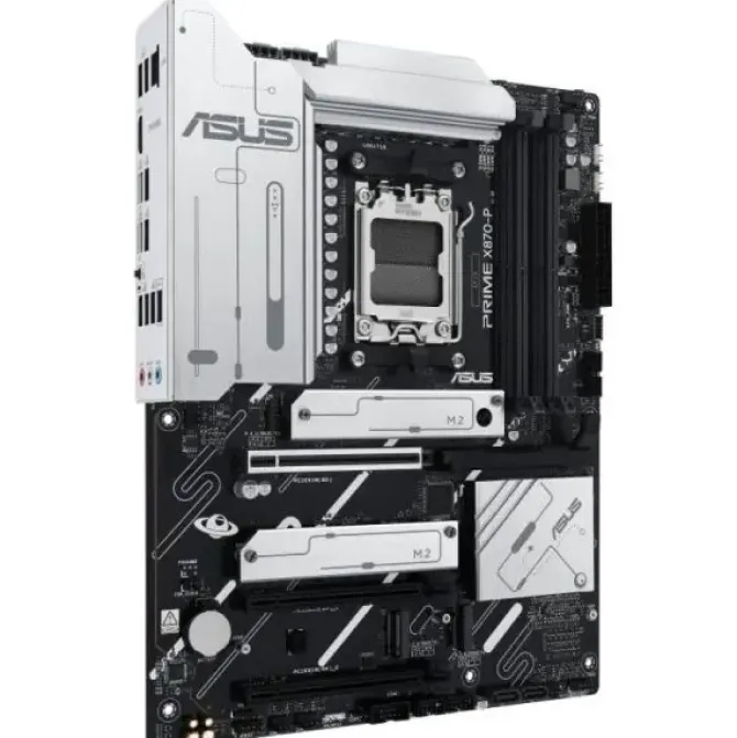 PRIME X870-P WIFI ofrece un total de cuatro ranuras M.2, incluida una que admite velocidades de transferencia de datos de hasta 128 Gbps mediante PCIe 5.0, dos que admiten 64 Gbps mediante PCIe 4.0 y una que admite PCIe 3.0. Esto permite tiempos de arranque y carga de aplicaciones más rápidos con unidades de SO o aplicaciones.