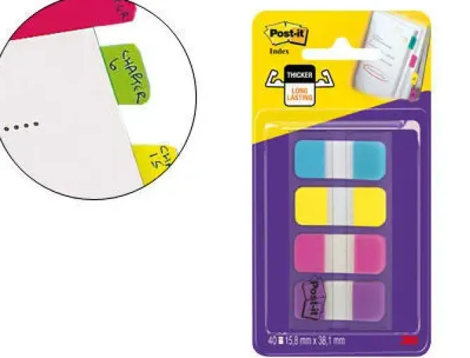BANDERITAS SEPARADORAS RIGIDAS DISPENSADOR 4 COLORES AMARILLO AZUL ROSA Y VIOLETA POST-IT INDEX 676-AYPV-EU