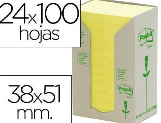 BLOC DE NOTAS ADHESIVAS QUITA Y PON RECICLADAS EN TORRE POST-IT 38 X 51 MM 24 BLOCS 653 RECICLADO