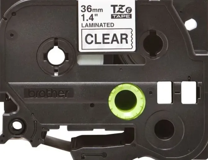 BROTHER TZE161 CINTA LAMINADA ORIGINAL DE ETIQUETAS – TEXTO NEGRO SOBRE FONDO TRANSPARENTE – ANCHO 36MM X 8 METROS