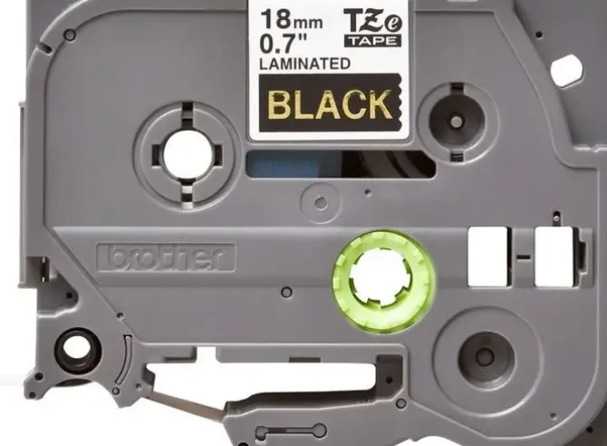 BROTHER TZE344 CINTA LAMINADA ORIGINAL DE ETIQUETAS – TEXTO DORADO SOBRE FONDO NEGRO – ANCHO 18MM X 8 METROS