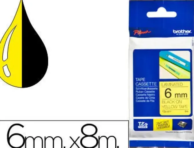 BROTHER TZE611 CINTA LAMINADA ORIGINAL DE ETIQUETAS – TEXTO NEGRO SOBRE FONDO AMARILLO – ANCHO 6MM X 8 METROS