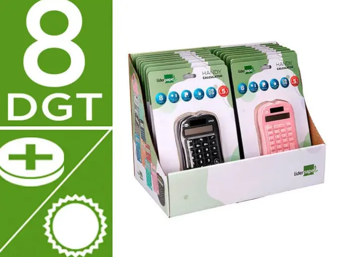 CALCULADORA LIDERPAPEL BOLSILLO XF44 8 DIGITOS SOLAR Y PILAS 94X59,5X10,5MM EXP. DE16 UNIDADES COLORES SURTIDOS