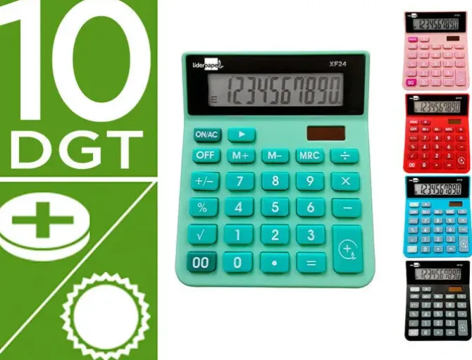 CALCULADORA LIDERPAPEL SOBREMESA XF24 10 DIGITOS SOLAR Y PILAS COLOR VERDE 127X105X24 MM
