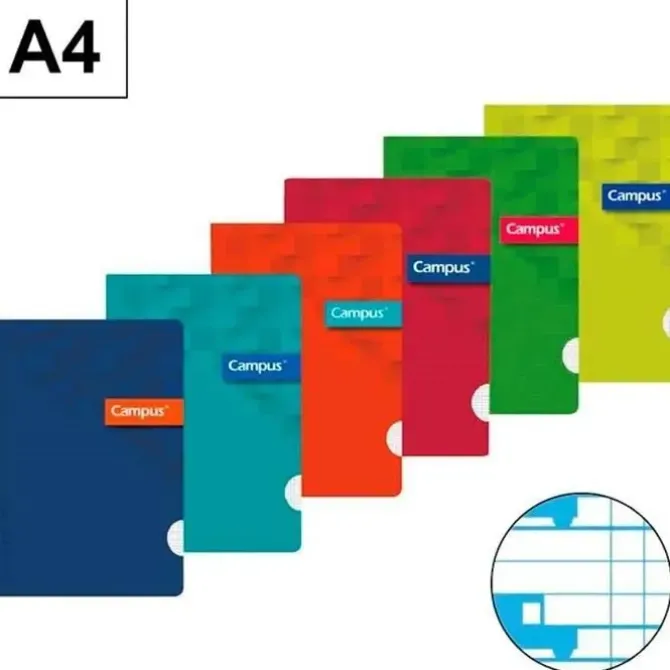 CAMPUS LIBRETA A4 PAUTA VIA 4MM GRAPADA 48HOJAS TAPA PP POLIPROPILENO 90GR CUADRO MELA 4MM 002759 MAK002759