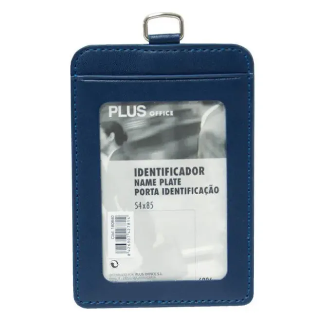 Identificador simil-piel Plus Office azul marino vertical