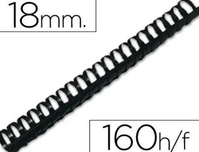 CANUTILLO Q-CONNECT REDONDO 18 MM PLASTICO NEGRO CAPACIDAD 160 HOJAS CAJA DE 50 UNIDADES