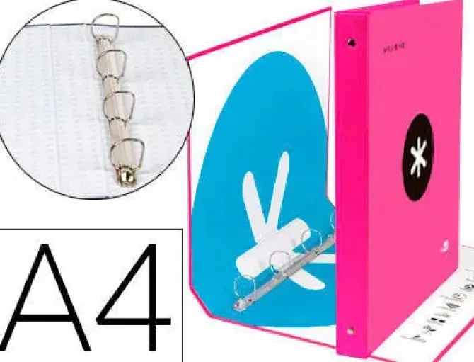 CARPETA 4 ANILLAS 40 MM MIXTAS LIDERPAPEL ANTARTIK A4 FORRADA COLOR ROSA