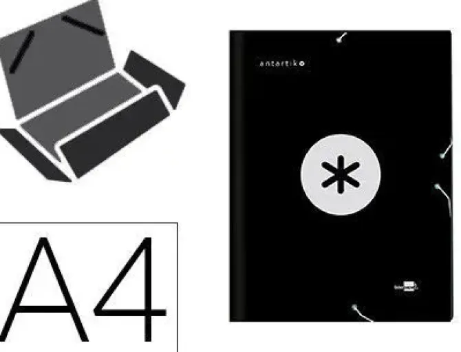 CARPETA LIDERPAPEL ANTARTIK GOMAS A4 3 SOLAPAS CARTON FORRADO COLOR NEGRO