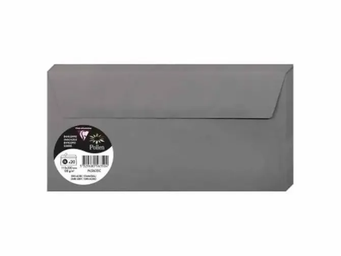CLAIREFONTAINE POLLEN 20 SOBRES PLUS 110X220 120GR GRIS ACERO 5635C