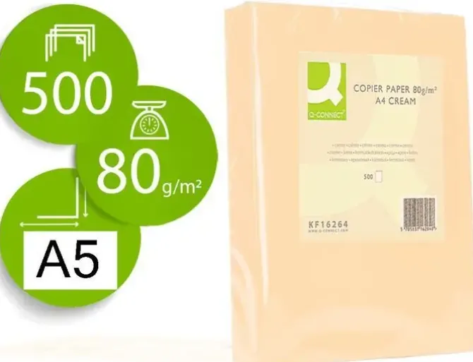 Papel color q-connect tamaño cuartilla o medio folio din a5 80gr crema paquete de 500 hojas.