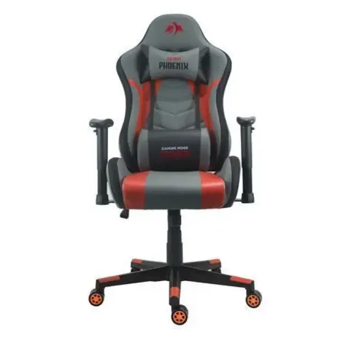 CROMAD SERIE PHOENIX SILLA GAMING - ALTURA REGULABLE CON PISTON DE GAS CLASE 2 - RECLINABLE HASTA 180º - COJINES LUMBAR Y CERVICAL - COLOR GRIS/ROJO/NEGRO