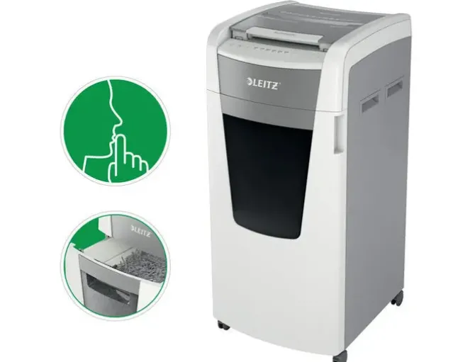 DESTRUCTORA DE DOCUMENTOS LEITZ IQ AUTO+ OFFICE PRO 600 CAPACIDAD DE CORTE 600 HOJAS DESTRUYE GRAPAS Y CLIPS