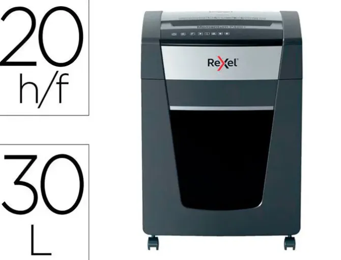 DESTRUCTORA DE DOCUMENTOS REXEL MOMENTUM EXTRA P420+ CAPACIDAD CORTE 20 H P4 DESTRUYE GRAPAS CLIPS CD Y