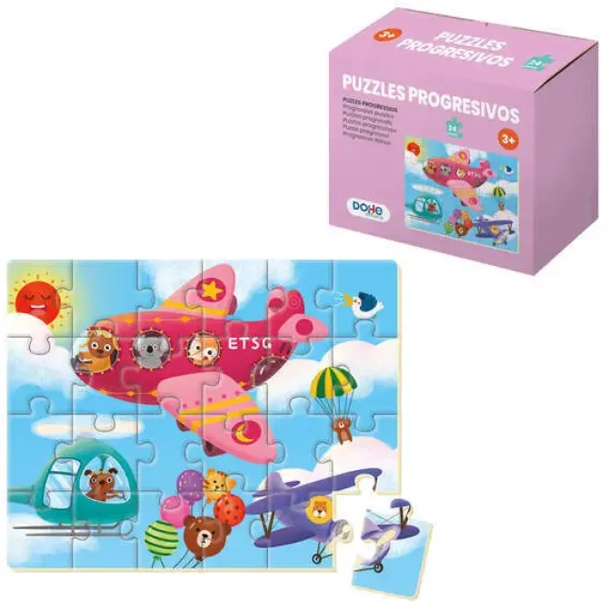 DOHE PUZZLE INFANTIL DE 24 PIEZAS – TEMATICA AVIONES – FABRICADO EN DOBLE CAPA DE CARTON – CAPA INTERMEDIA DE CONTRACHAPADO – ESTIMULA LA IMAGINACION – A PARTIR DE 3 AÑOS