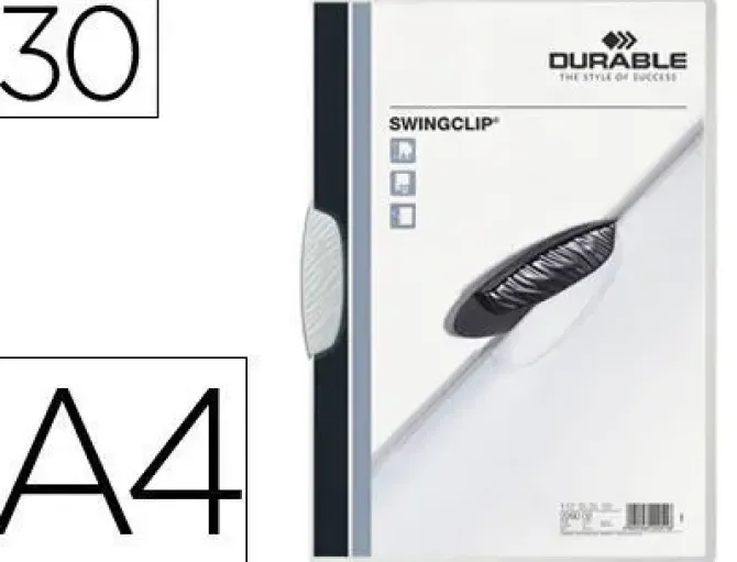 -Carpeta con pinza ovalada de plástico, que gira lateralmente para un fácil manejo.