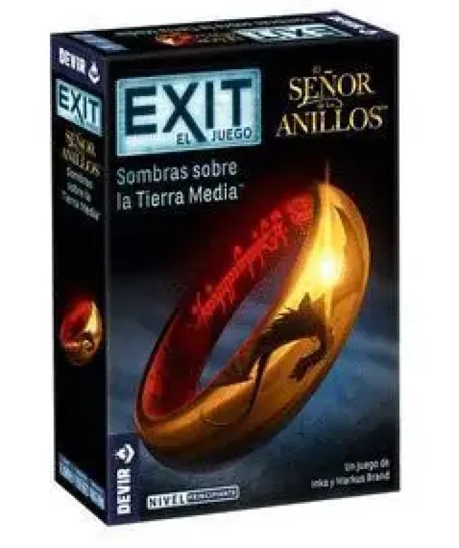 ¡La Tierra Media corre un grave peligro! Frodo y la Comunidad se dirigen hacia Mordor para destruir el Anillo Único. ¡Pero necesitan vuestra ayuda! Poneos en marcha y cumplid las misiones que Gandalf os encomendará. ¿Conseguiréis ganar tiempo suficiente para que Frodo pueda llegar al Monte del Destino? Exit: El Señor de los Anillos, sombras sobre la Tierra Media es un juego de escape cooperativo diseñado por Inka y Markus Brand, inspirado en el universo de fantasía épica creado por J.R.R. Tolkien. Se puede disfrutar en solitario o en un grupo de hasta 4 personas, a partir 10 años, en partidas que pueden durar entre 60 y 90 minutos. A través de 90 cartas, un cuaderno y algunos objetos especiales, los jugadores podrán explorar e interactuar con el entorno y todo lo que vayan encontrando en su camino para tener éxito en la aventura. La saga de juegos Exit nos trae en cada caja todo lo necesario para vivir la emoción de las mejores Escape room o salas de escape desde el salón de casa. Cada título tiene una temática y una historia completamente diferente en la que los jugadores son los protagonistas.