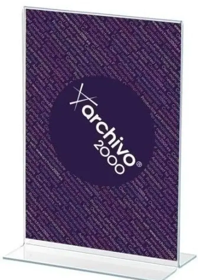 EXPOSITOR SOBREMESA EN FORMA DE T A4 VERTICAL CRISTAL