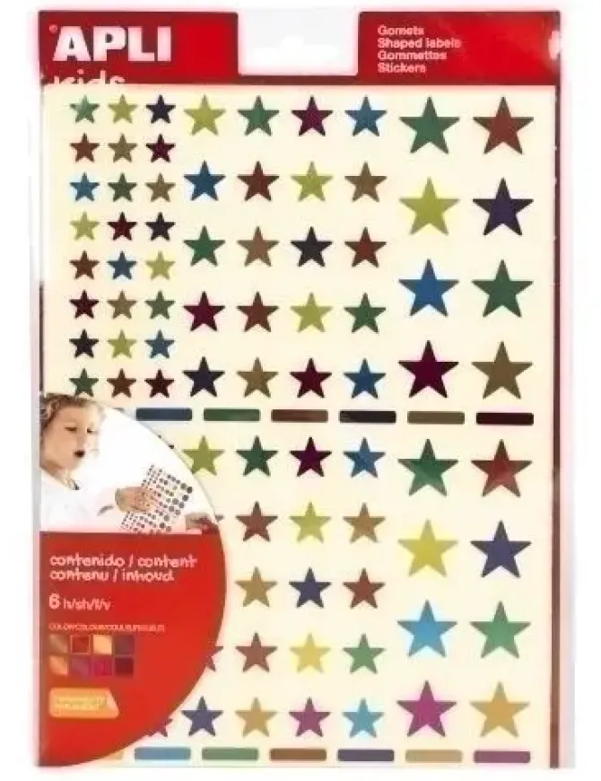 GOMETS APLI BOLSA PERMANENTES 6H ESTRELLAS MULTICOLOR 7 COL.SURT.(METALIZADOS) 624 UDS. (18396)