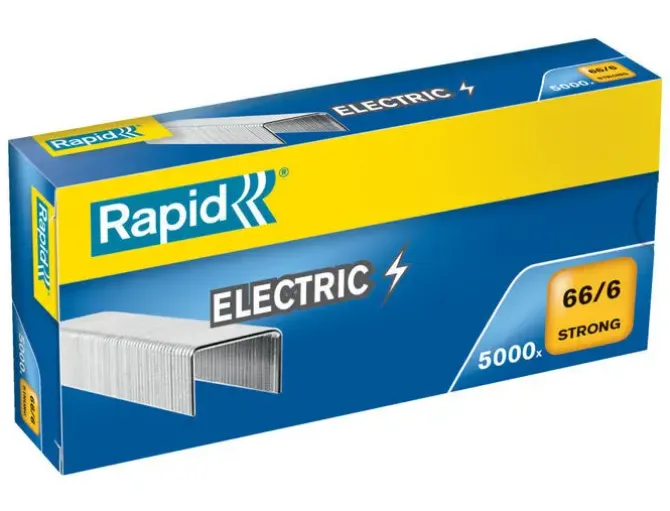 Grapas Strong Rapid 66/6 Electric. Grapas Strong de alambre con bordes afilados para garantizar una penetración de calidad con grapadoras eléctricas.