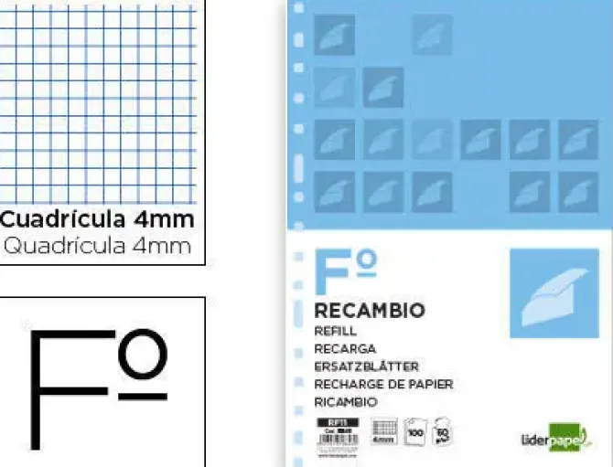 LIDERPAPEL RECAMBIO FOLIO 100H MULTITALADRO CUADRO 4 MM