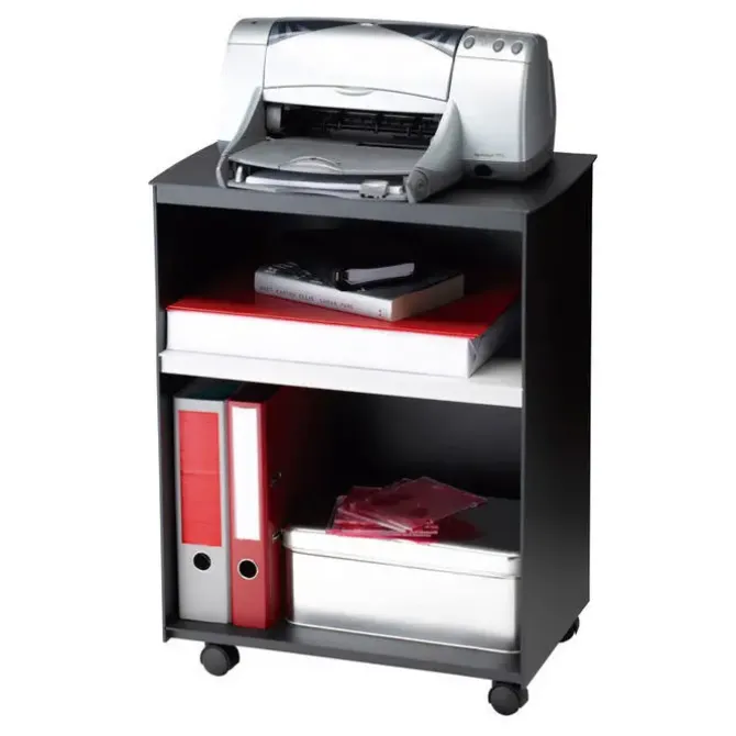 Mesa auxiliar Paperflow con ruedas y 2 compartimentos. Negro/gris. 545x699x335mm