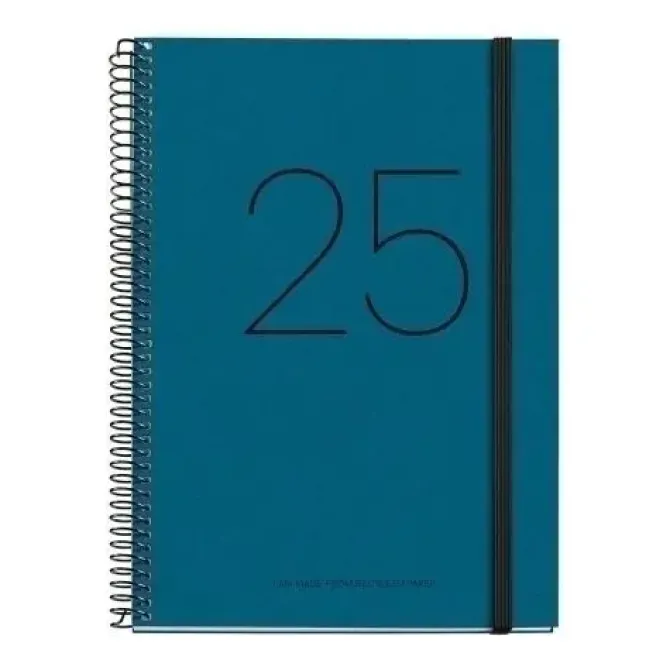MIQUELRIUS AGENDA ANUAL (2025) MIQUELRIUS RECYCLED ESPIRAL TAPA DURA CON GOMA PLUS 155X213 S/V AZUL