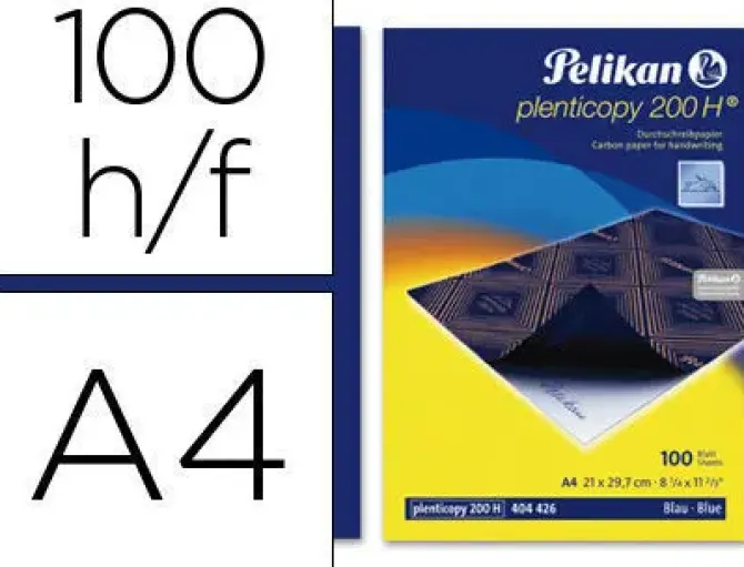 Ideal para copias manuscritas con color intenso. Tiene un revestimiento encerado en la parte posterior. Copia en color azul. Din A4. Caja de 100 hojas.