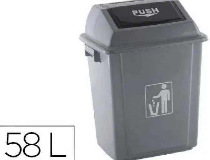 PAPELERA CONTENEDOR Q-CONNECT PLASTICO CON TAPA DE BALANCIN 58 LITROS GRIS 470X330X760 MM