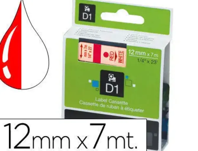 ##DYMO CINTA DYMO D1 12MM. X 7 M. ROJO-BLANCO REF 45015