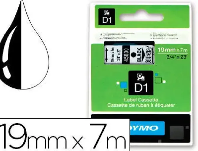 DYMO CINTA DYMO D1 19MM. X 7 M. NEGRO-TRANSPARENTE REF 45800 S07208020