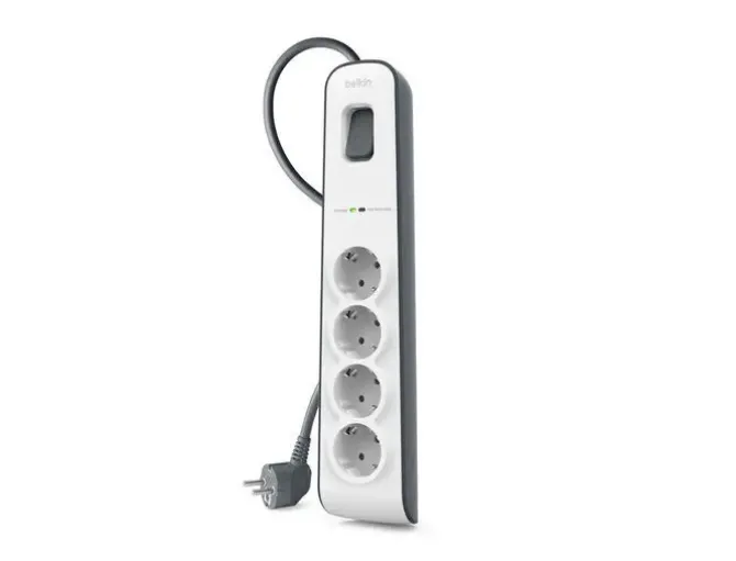 REGLETA BELKIN BSV400VF2M DE PROTECCION CONTRA SOBRETENSIONES 4 TOMAS BOTON DE APAGADO Y ENCENDIDO COLOR