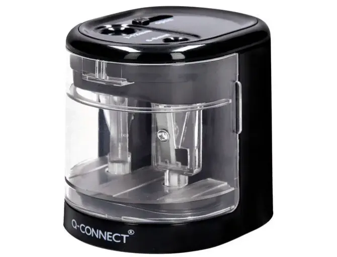 SACAPUNTAS Q-CONNECT KF14568 ELECTRICO DE SOBREMESA CABLE USB/4 PILAS AA AFILA CUCHILLA DIAMETROS DE 6 A 12MM DOS USOS