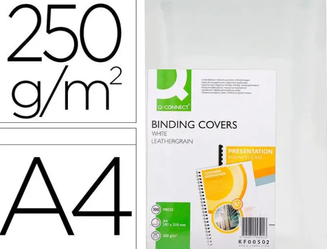 TAPA DE ENCUADERNACION Q-CONNECT CARTON DIN A4 BLANCO SIMIL PIEL CAJA DE 100 UNIDADES