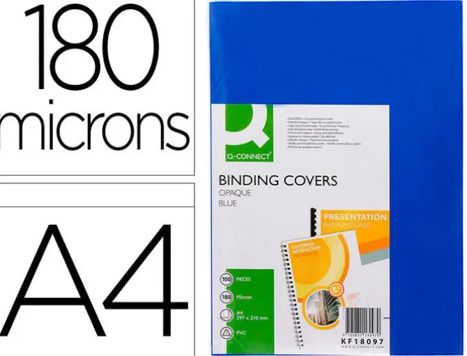 TAPA DE ENCUADERNACION Q-CONNECT PVC DIN A4 OPACA AZUL 180 MICRAS CAJA DE 100 UNIDADES