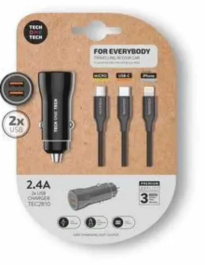-Cable 3 en 1: 1 MicroUSB, Lightning y USB-C