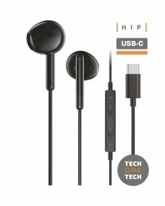-Auriculares HIP ergonómicos, sonido estéreo, con micrófono, controles de volumen y tercer botón multifunción.