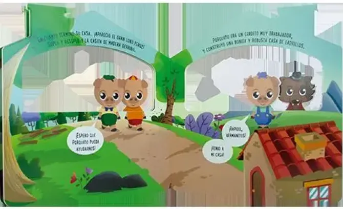 El clásico cuento de los tres cerditos narrado en un texto breve y fácilmente comprensible para los pequeños, acompañado de divertidas ilustraciones a todo color. Con páginas de cartón en forma de casita con chimenea y los personajes troquelados, el libro integra un asa que facilita a los niños su transporte y les permite jugar como si de un guiñol se tratara.
