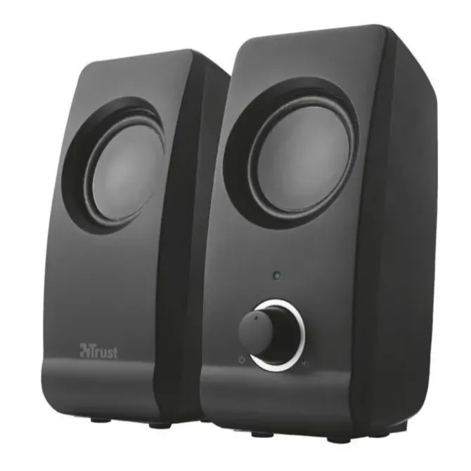 El juego de altavoces Remo 2.0 de Trust es un elegante complemento para tu PC u ordenador portátil que mejora el sonido. Conecta y disfruta de un sonido definido y rico en matices en casa, la oficina o cualquier otro lugar.