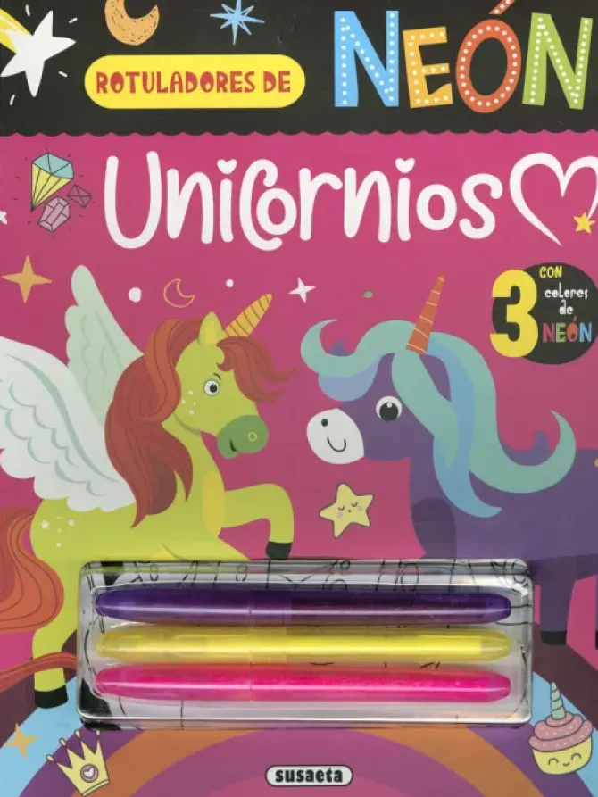 Disfruta de una experiencia electrizante con las láminas para colorear y los tres rotuladores fluorescentes. ¡Para fans de los unicornios!
