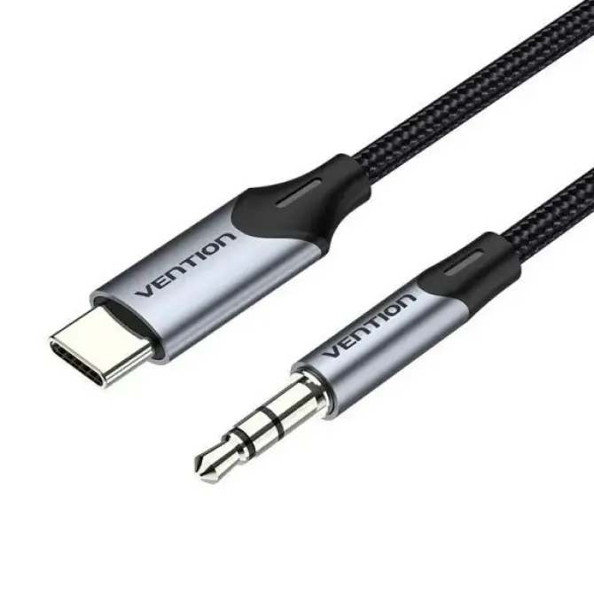 -Adaptador audio, con conector USB Tipo-C macho en un extremo y JACK 3.5 macho en el otro.