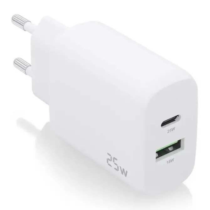 -Cargador USB-C 25W para cargar portátiles, móviles, cámaras y tablets etc. Diseño muy elegante, moderno y práctico.