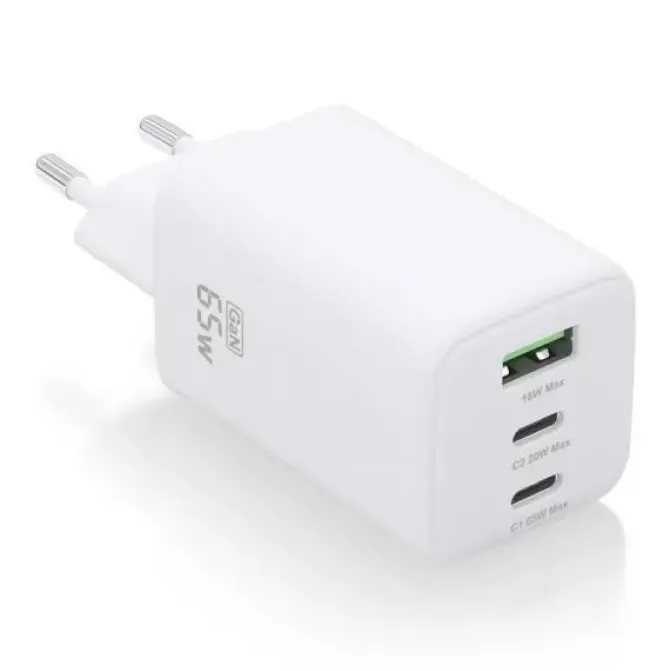 -Cargador GaN USB-C 65W para cargar portátiles, móviles, cámaras y tablets etc. Diseño muy elegante, moderno y práctico.