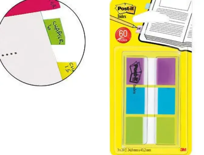 BANDERITAS SEPARADORAS POST-INDEX 680-ROY VERDE AZUL Y VIOLETA DISPENSADOR FUNDA 3X20