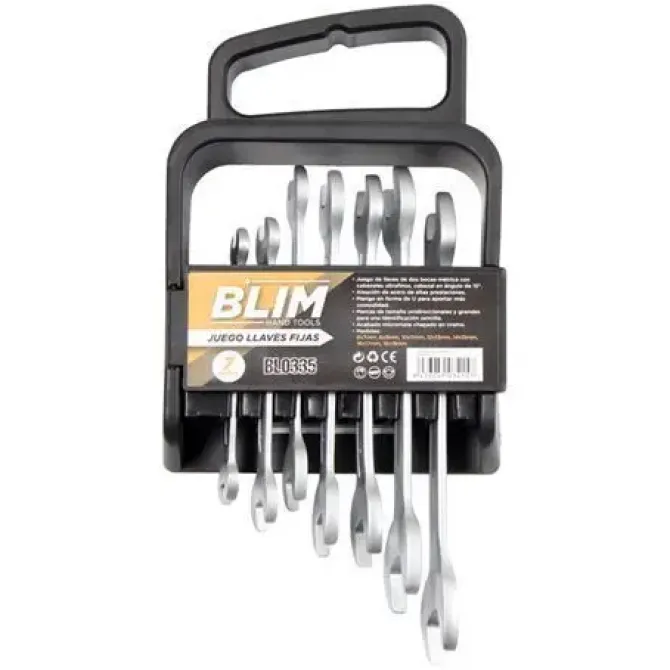 -Juego de 7 llaves de dos bocas métrica con cabezales ultrafinos, cabezal en ángulo de 15°