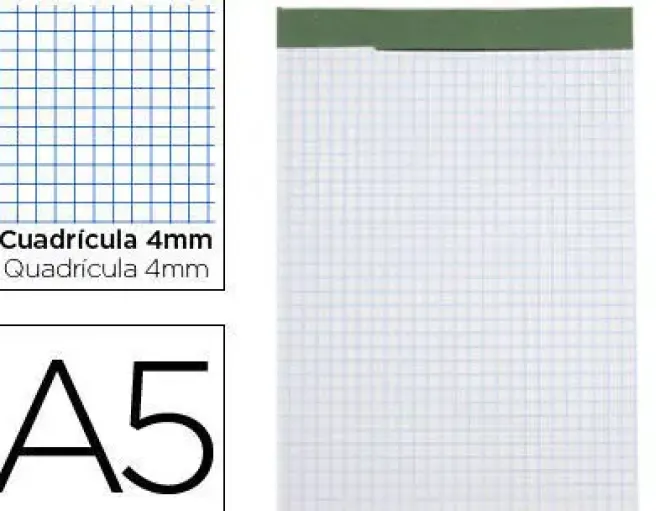 BLOC NOTAS LIDERPAPEL CUADRO 4 MM A5 80 HOJAS 60 G/M2 PERFORADO SIN TAPA