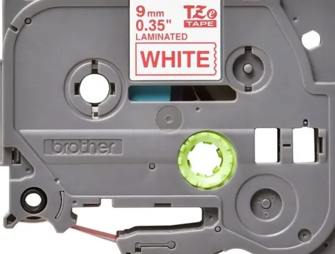 BROTHER TZE222 CINTA LAMINADA ORIGINAL DE ETIQUETAS – TEXTO ROJO SOBRE FONDO BLANCO – ANCHO 9MM X 8 METROS