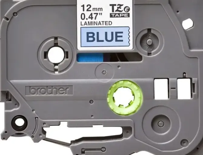 BROTHER TZE531 CINTA LAMINADA ORIGINAL DE ETIQUETAS – TEXTO NEGRO SOBRE FONDO AZUL – ANCHO 12MM X 8 METROS