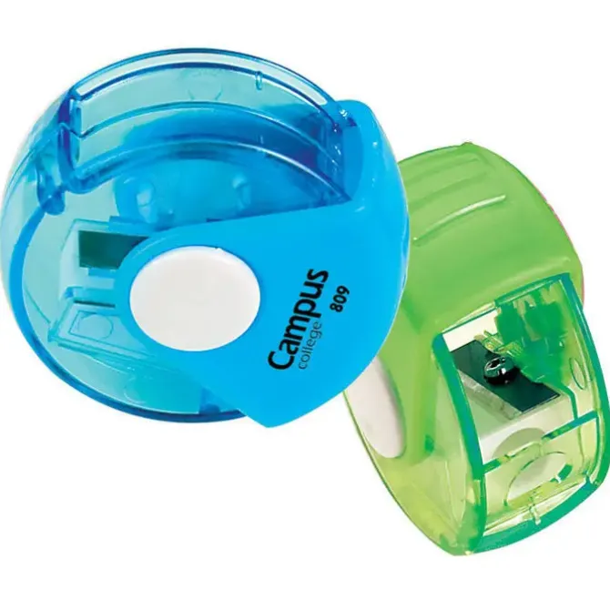 Afilalápices sacapuntas de plástico. Depósito transparente. Cuchilla de acero. Colores: verde y azul. Los puedes comprar más baratos, comprando el expositor 12 unidades. Precio por unidad.